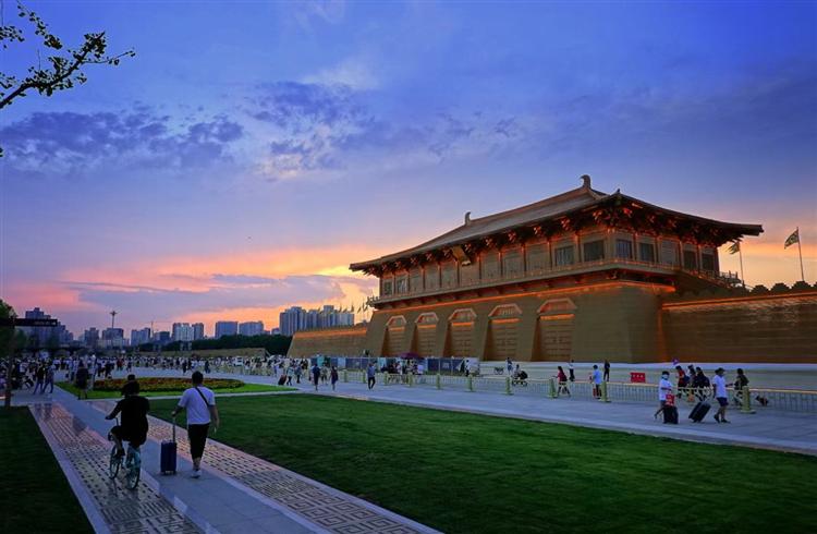 大明宫国家遗址公园单凤门晚霞。