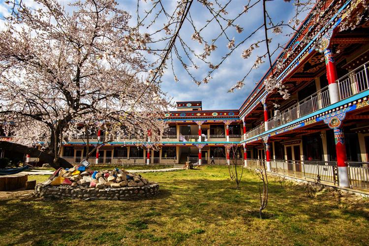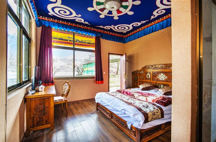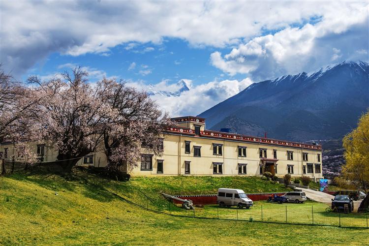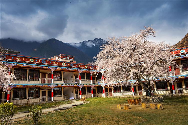 藏式的装修风格,藏族风格的餐饮,穿着藏袍的服务员,每个人都带着纯朴的笑容,让游客一下子觉得很新鲜。满院的桃花和绿草,有着悠然南山的诗意。坐在院子里,就能看到直插苍穹的南迦巴瓦峰和清澈激荡的雅鲁藏布江。