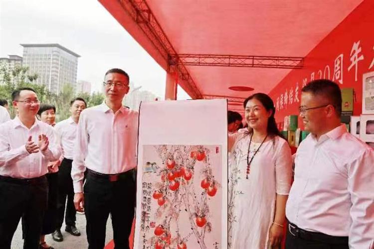 富平剌绣企业特制的绣品《柿柿红》赠送给闽候县。